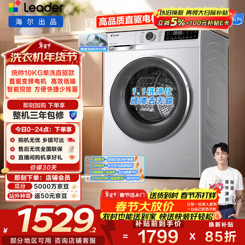 统帅(Leader)海尔出品 云朵滚筒洗衣机 全自动直驱 10公斤家用超薄 京东自营以旧换新家电补贴XQGL100-BD676SU1