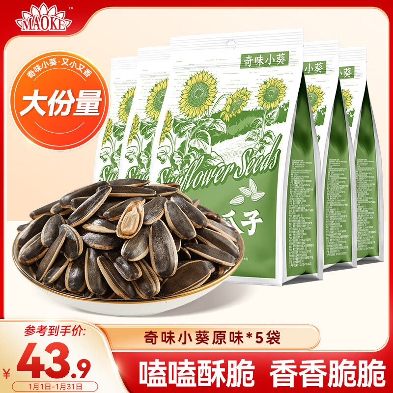 MAOKE毛嗑奇味小葵400g*5袋恰恰原味瓜子葵花籽小颗粒休闲零食小吃年货