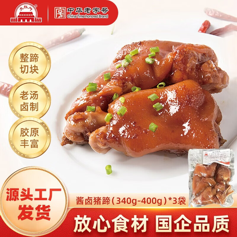 大紅門老北京大红门猪蹄酱卤鲜生卤味猪脚真空即食肉类熟食小吃下酒菜 酱卤猪蹄340g-400g*3袋