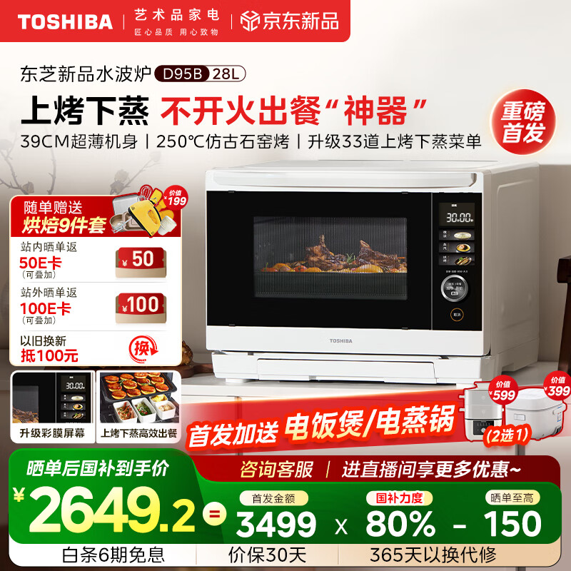 ¶«Ö¥£¨TOSHIBA£©¡¾¹ú¼Ò²¹Ìù20%¡¿Ë®²¨Â¯¼ÒÓÃ΢²¨Â¯¿¾Ïä28L³¬±¡Î¢Õô¿¾Õ¨ìÀÒ»Ìå»úÕô¿¾Ïä´¥¿Ø²ÊÆÁER-D95BW Ë®²¨Â¯D95