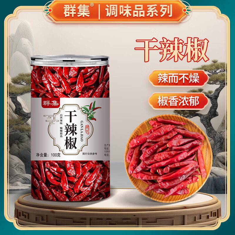 群集 朝天干辣椒100g罐装 四川火锅用辣椒炖卤料火锅底料调料