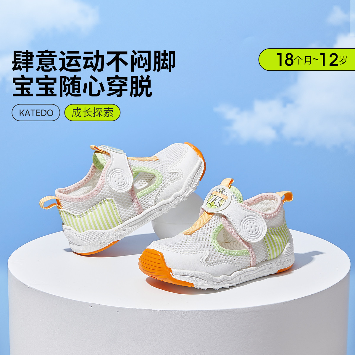 卡特兔 童鞋男女运动凉鞋魔术贴便携宝宝鞋子婴幼儿网面透气包头鞋