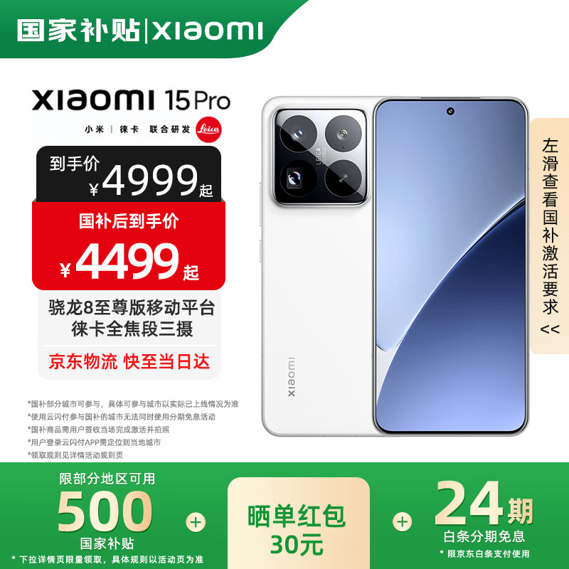 小米15pro 国家补贴 新品5G小米手机 白色 12GB+256GB 官方标配