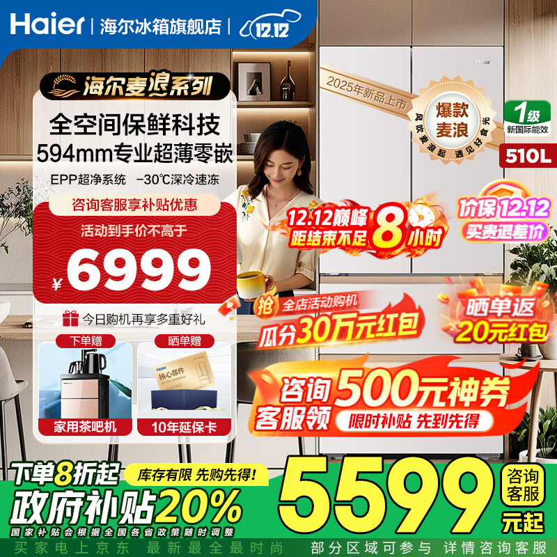 º£¶û£¨Haier£©ÂóÀ˱ùÏä510Éýרҵ³¬±¡ÁãǶÈëʽȫ¿Õ¼ä±£ÏÊËÄÃÅ·¨Ê½¶àÃÅÒ»¼¶ÄÜЧ˫±äƵ¹ú¼Ò²¹Ìù´óÈÝÁ¿¼ÒÓõç±ùÏä 510ÉýÂóÀË+594³¬±¡Ç¶+È«¿Õ¼ä±£ÏÊ+EPP³¬¾»