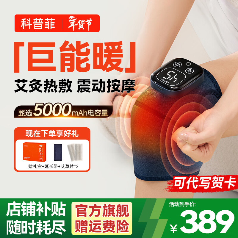 科普菲(keepfit)膝盖按摩器电加热关节疼痛腿部保暖发热护膝艾草老寒腿理疗热敷实用生日礼物女【2只装】 臻享款【热敷+按摩】5000mAh