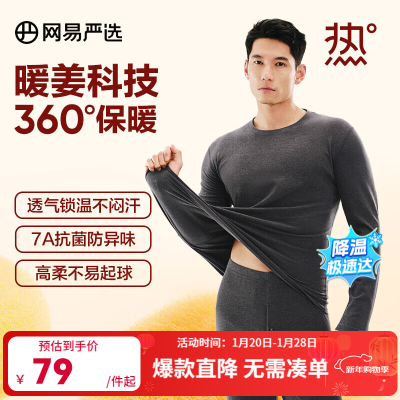网易严选新品热咖302暖姜保暖内衣240g重磅7A抗菌柔软透气不闷汗秋衣秋裤 B款230g-星河灰-男 XL