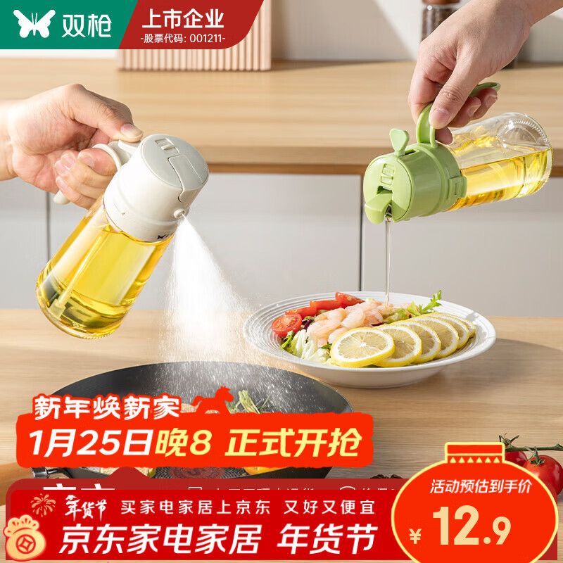 双枪喷倒两用油壶家用厨房玻璃食品级酱油醋调料瓶雾化喷油壶油瓶 【多功能三合一】象牙白470ml