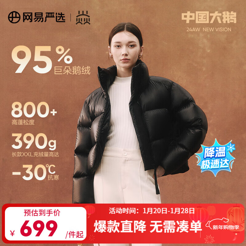 网易严选中国大鹅x燕云联名款焱2.0升级经典95白鹅绒羽绒服高蓬五防大被子 24年基础款-朱墨(短款) -女款 L (175/96A)