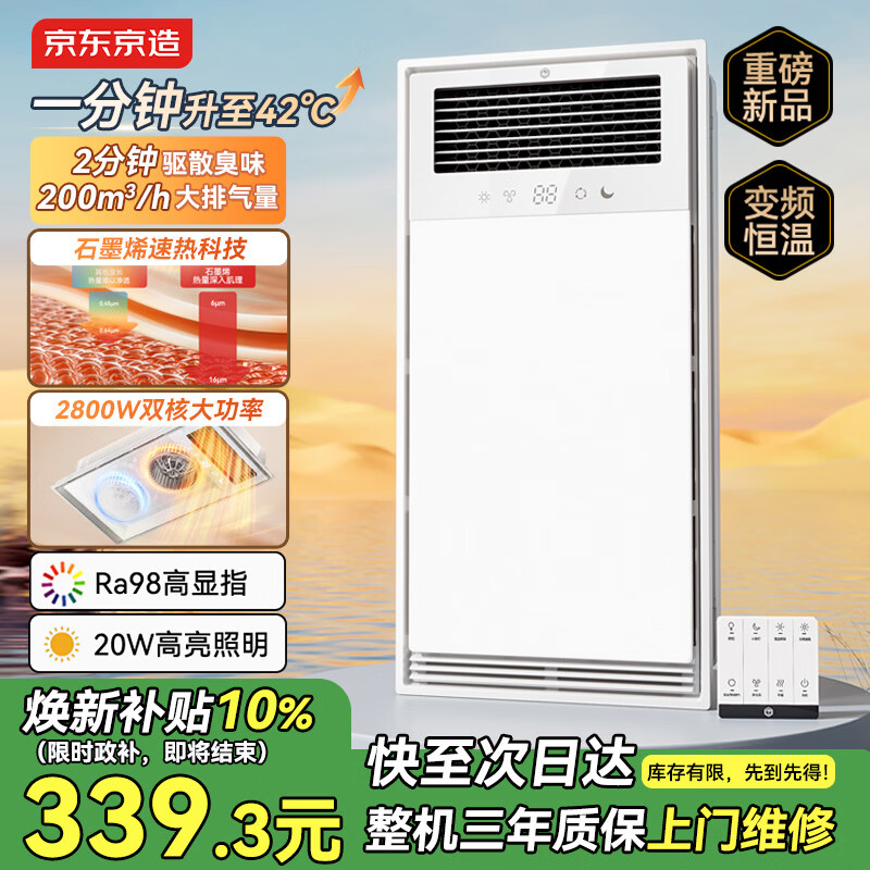 京东京造白月浴霸大功率变频风暖照明灯排换气一体卫生间集成吊顶双电机