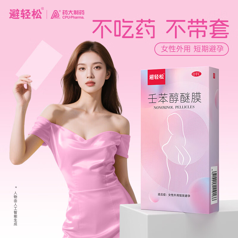 避轻松壬苯醇醚膜50mg*1张/袋*2袋/盒 女性外用短效避孕