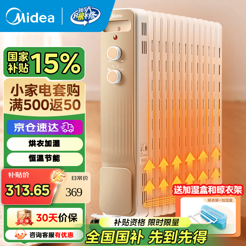 美的(Midea)取暖器电油汀家用电暖器片13片油丁防烫电暖气片办公室卧室全屋升温 高效恒温