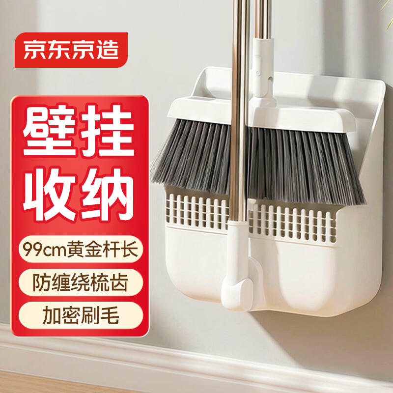 京东京造可折叠扫把簸箕套装 家用清洁垃圾铲加密梳齿笤帚扫地扫帚两件套