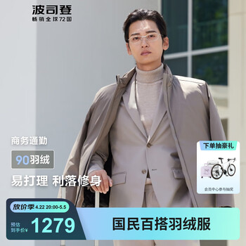 波司登(BOSIDENG)经典商务轻薄鹅绒羽绒服男短款90绒通勤休闲保暖立领显瘦夹克外套 砂石咖7959 M 175/96A