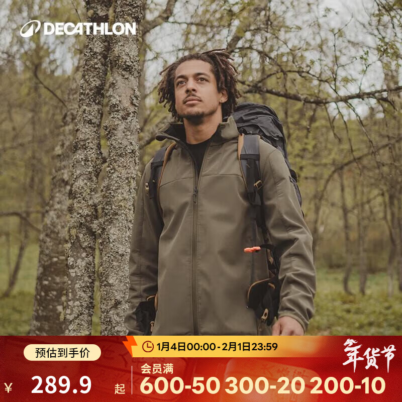 迪卡侬(DECATHLON)男士夹克软壳男士夹克男加绒软壳衣男抓绒保暖防风防泼水MT100 军绿色 L