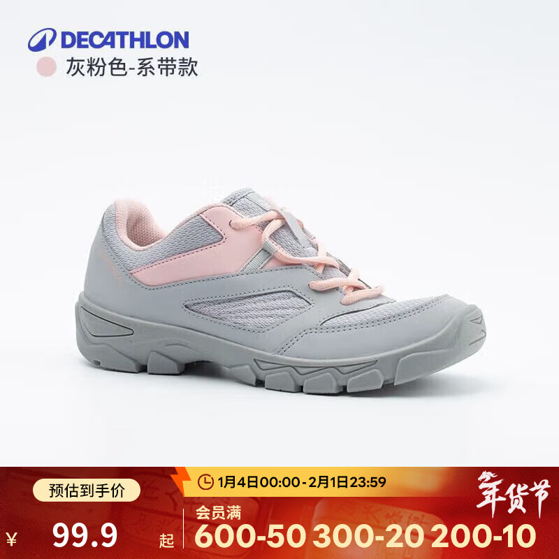 迪卡侬(DECATHLON)儿童徒步鞋童鞋女童春秋登山鞋防滑舒适缓震运动鞋 灰粉色_系带款 35