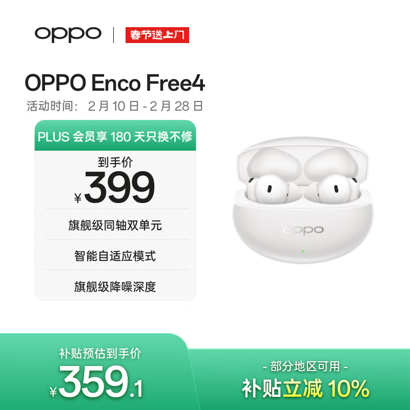 OPPO Enco Free4 真无线入耳式蓝牙耳机降噪耳机翻译耳机通用苹果华为小米手机 珠光白