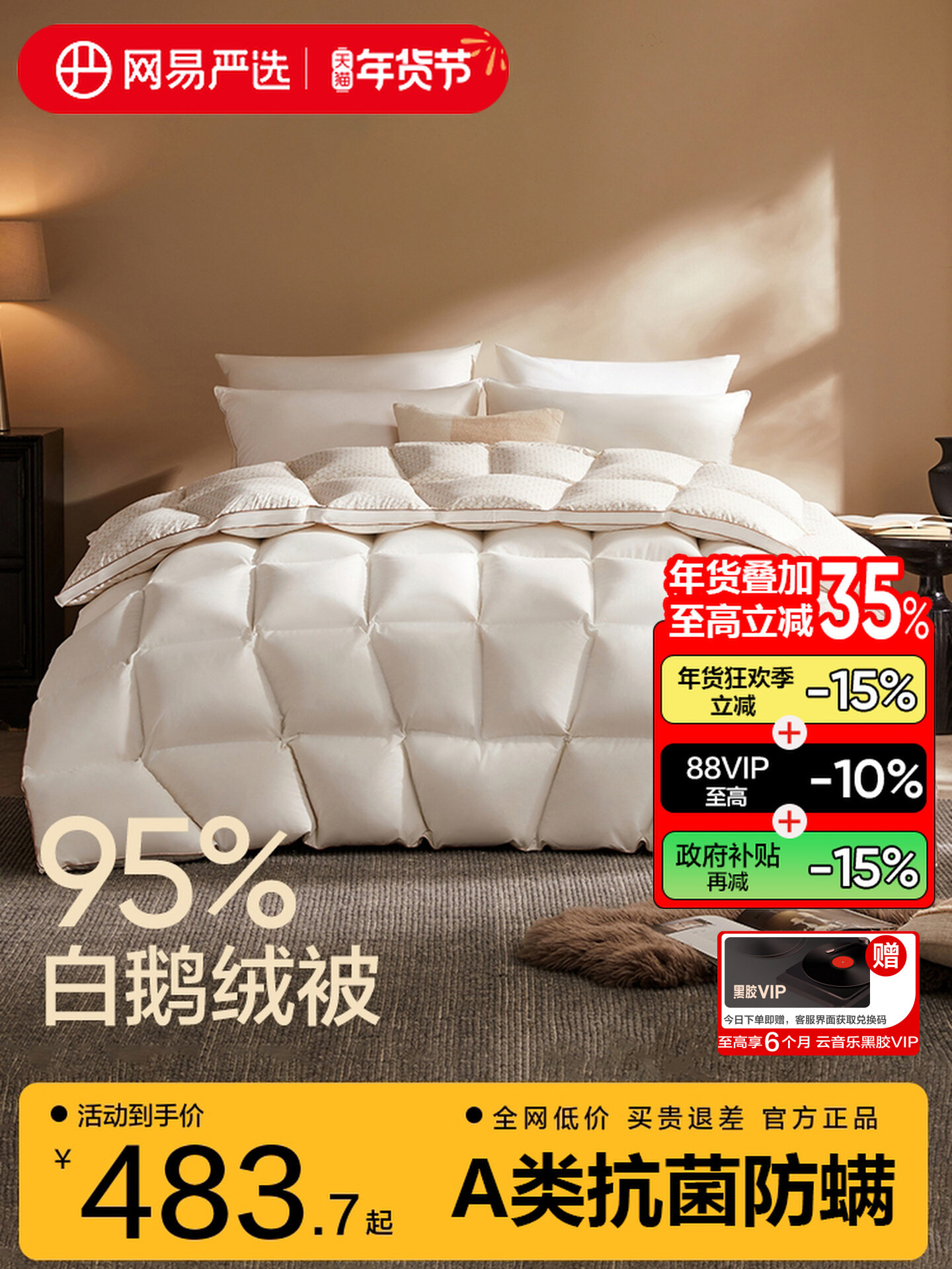 网易严选大鹅羽绒被95白鹅绒被品牌正品加厚冬被被芯抗菌春秋被子