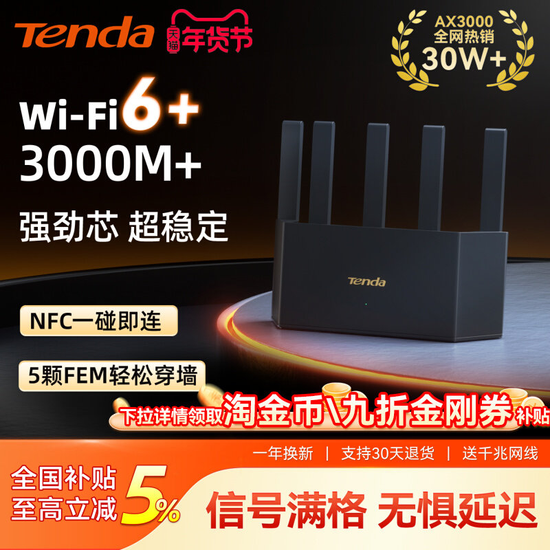 Tenda腾达路由器WiFi 6+云霄【顺丰极速发】AX3000千兆高速家用穿墙王无线5G双频全屋覆盖新款漏油器