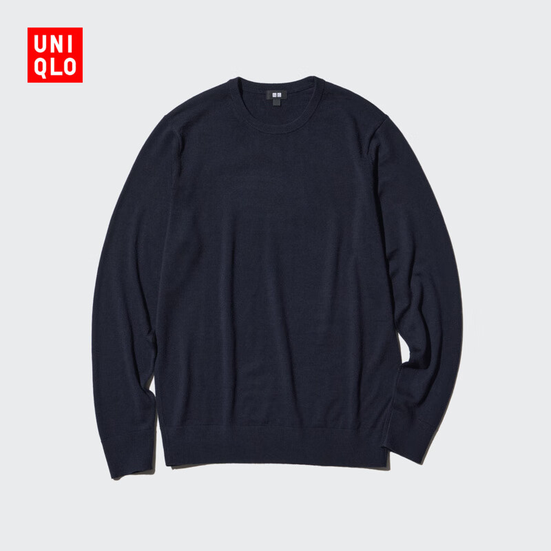 优衣库男装精纺美利奴羊毛圆领针织衫/长袖毛衣毛衫469395 469395/69藏青色 S /165/84A