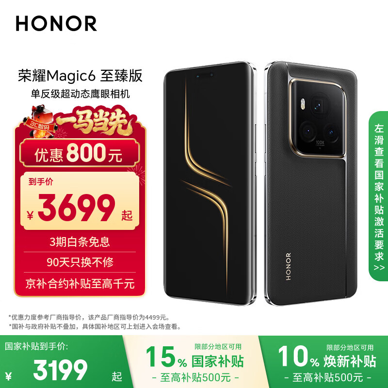 荣耀Magic6 至臻版 单反级超动态鹰眼相机 骁龙8Gen3 荣耀鸿燕通信 16+512 墨岩黑 国家补贴 5G AI手机