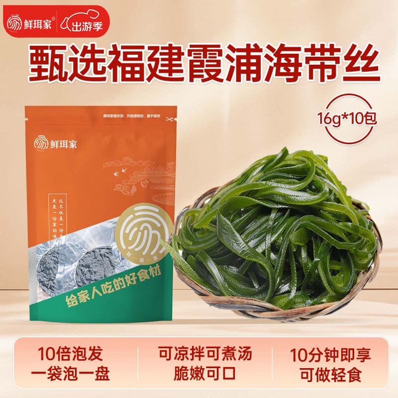 鲜珥家压缩海带丝16g/袋福建霞浦特产凉拌高泡发鲜嫩爽口干货圆饼海带 海带丝16g*10包