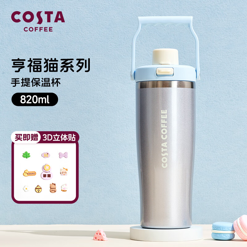 COSTA男女士大容量手提杯便携运动水杯316不锈钢保温杯吸管杯子保冷