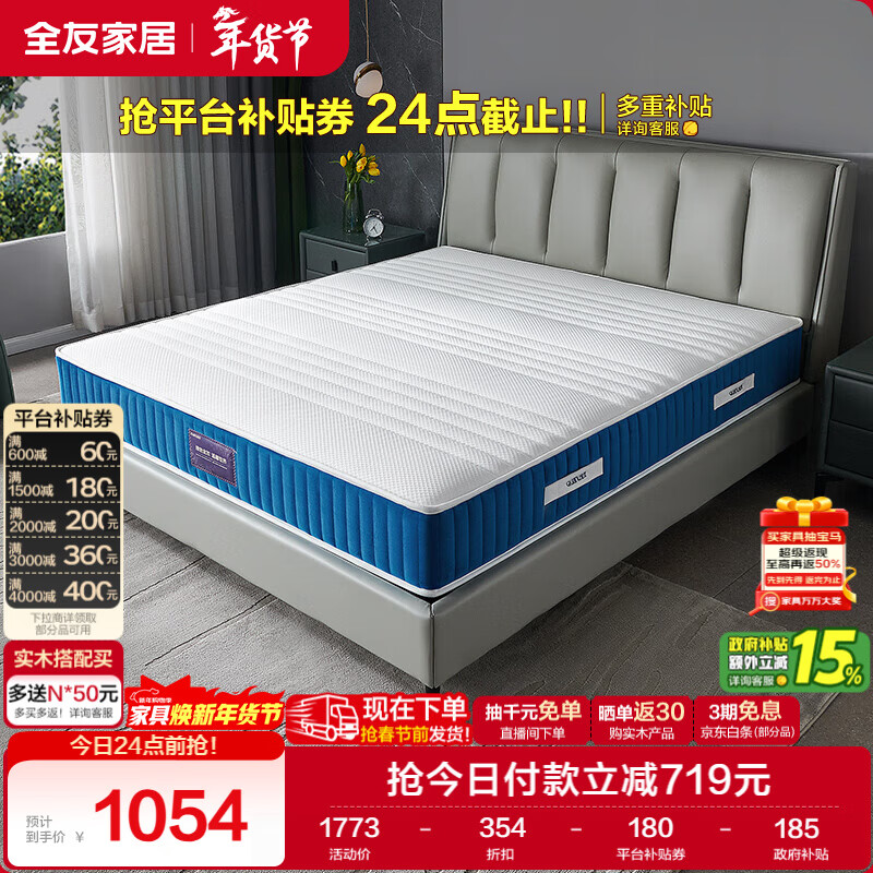 全友家居 床垫防螨抑菌进口乳胶床垫独立袋装弹簧卧室厚床垫
