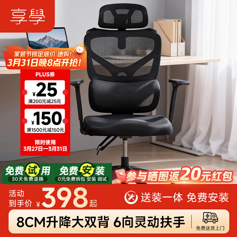 享学电脑椅人体工学椅电竞椅办公椅久坐撑腰护脊自适应腰托 LS-1黑色