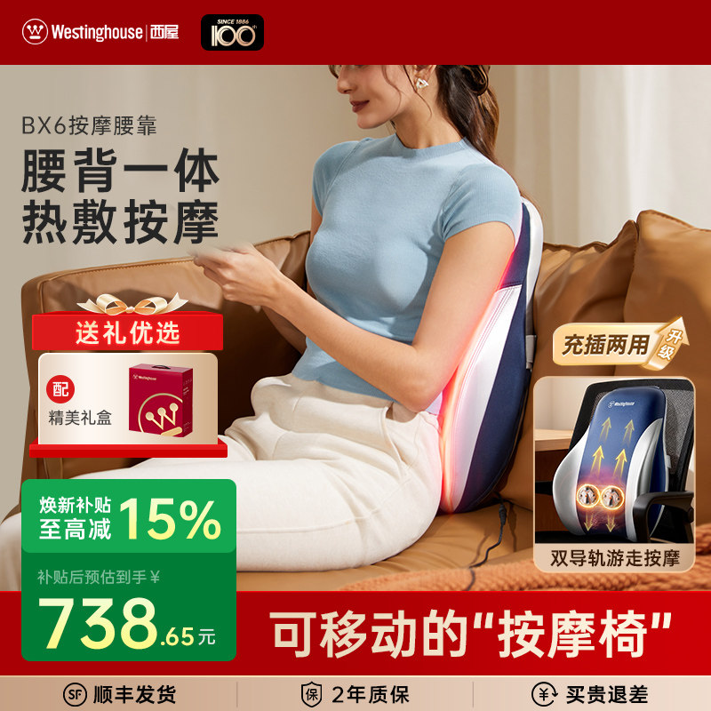 美国西屋BX6腰部按摩仪全自动多功能揉捏全身背部按摩器按摩靠垫