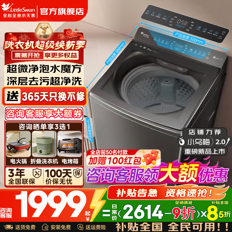 小天鹅(LittleSwan)波轮洗衣机全自动国家补贴家用10公斤小乌梅2.0水魔方变频防缠绕 一级能效 后控触屏护腰 以旧换新 【小乌梅2.0标准版】超微净泡+净渍洗去污升级 波轮