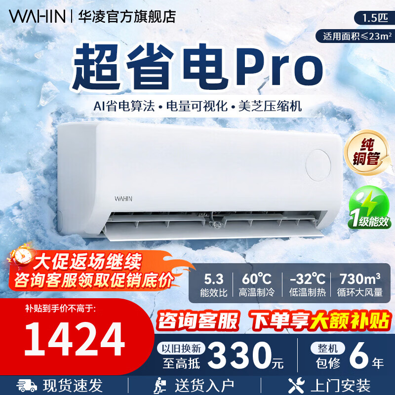 华凌空调【国家补贴】神机二代 一级能效卧室挂机 超省电MAX变频冷暖大风口客厅卧室空调挂机升级PRO 超省电pro 大1.5匹 35HA1Ⅲ-P【AI节能】