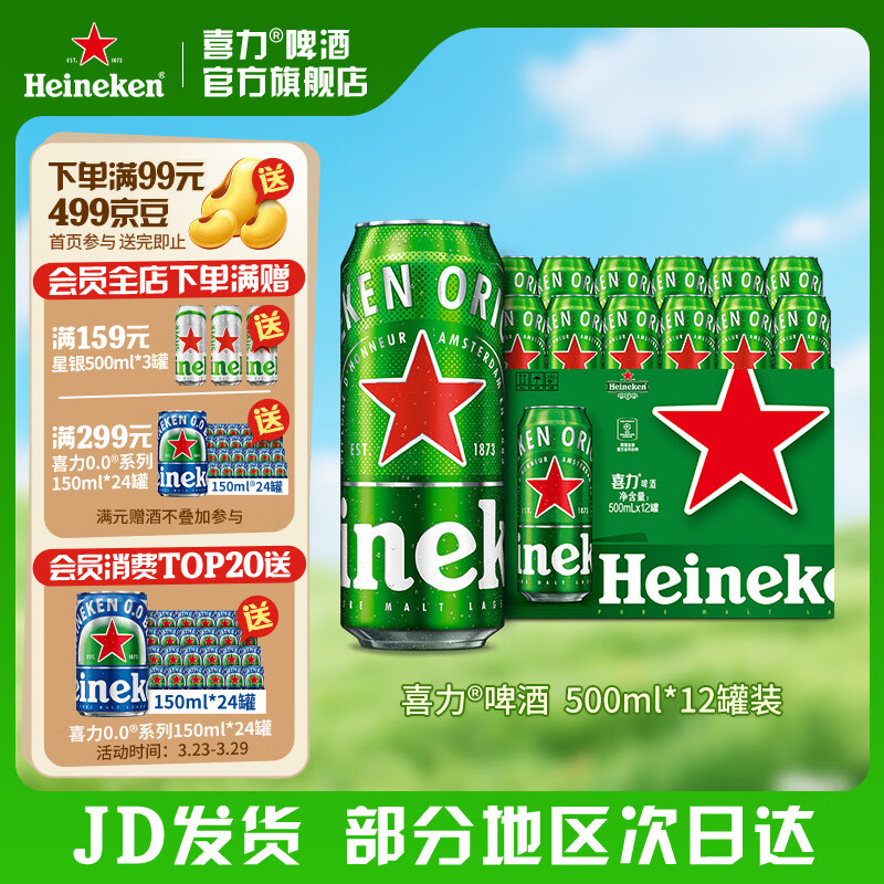 喜力啤酒 经典罐装 整箱装麦芽啤酒 全麦酿造 官方正品 500mL 12罐