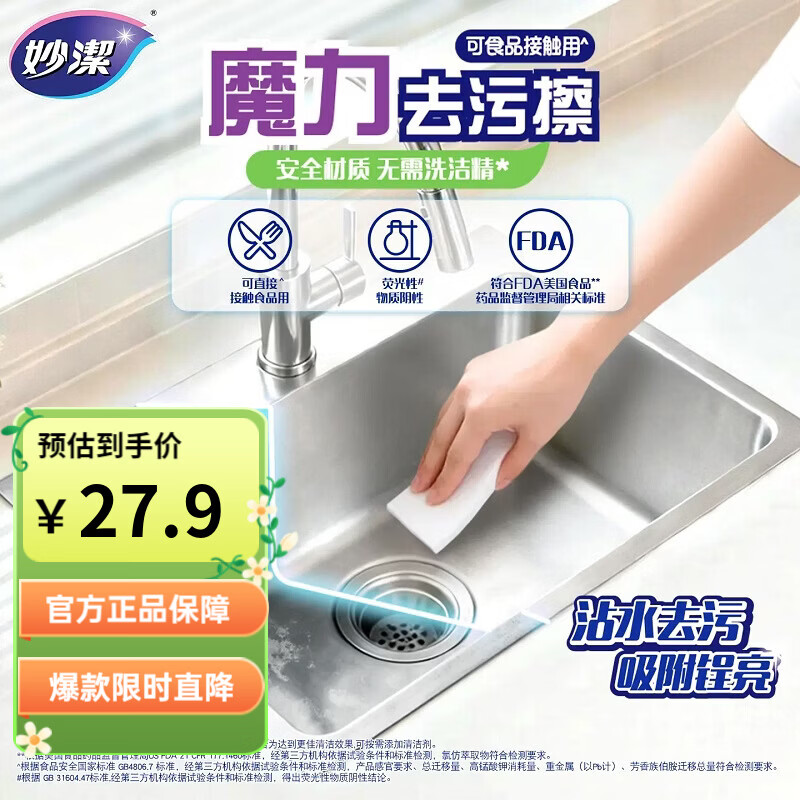 妙洁 魔力去污擦 海绵擦百洁布家用洗碗刷锅抹布清洁去污 【小尺寸】2包共40片