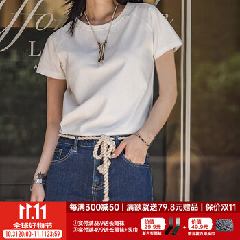 马登女装 新疆棉圆领短袖T恤夏季基础百搭半袖衫Vintage纯色插肩体恤 象牙白 S