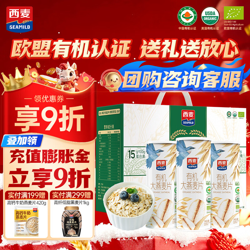 西麦高端有机全粒燕麦片礼盒1050g 高蛋白春节新年货送礼佳品中老年