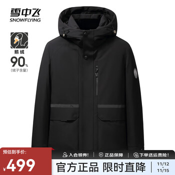 雪中飞【鹅绒】秋冬新款时尚休闲大口袋百搭舒适温暖男士羽绒服 黑色|8056 175/92A(L)