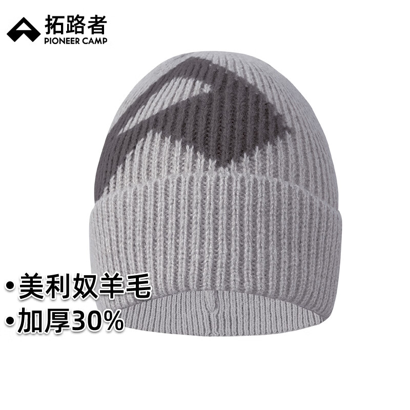 拓路者美利奴羊毛帽男秋冬帽子保暖护耳针织毛线帽子 珍珠灰 58-62CM