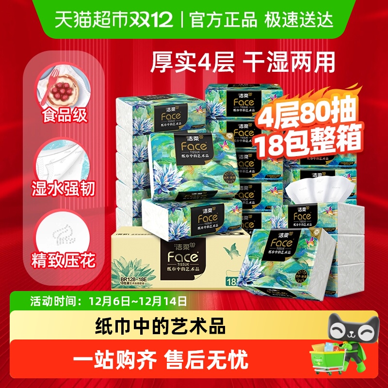 【下拉商详享优惠】洁柔纸巾面巾纸油画大包可湿水抽纸4层加厚型