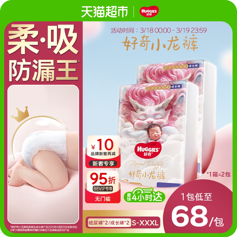 【原箱发货】好奇皇家小龙裤纸尿裤拉拉裤S-3XL柔吸防漏王