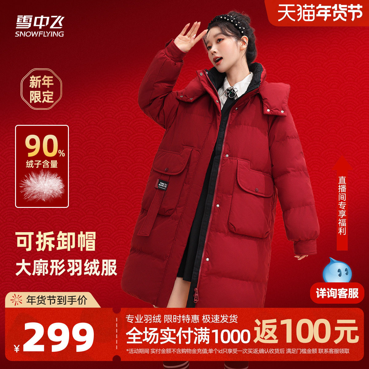 雪中飞2025冬新款女士新年红中长羽绒服喜庆小个子加厚保暖韩版