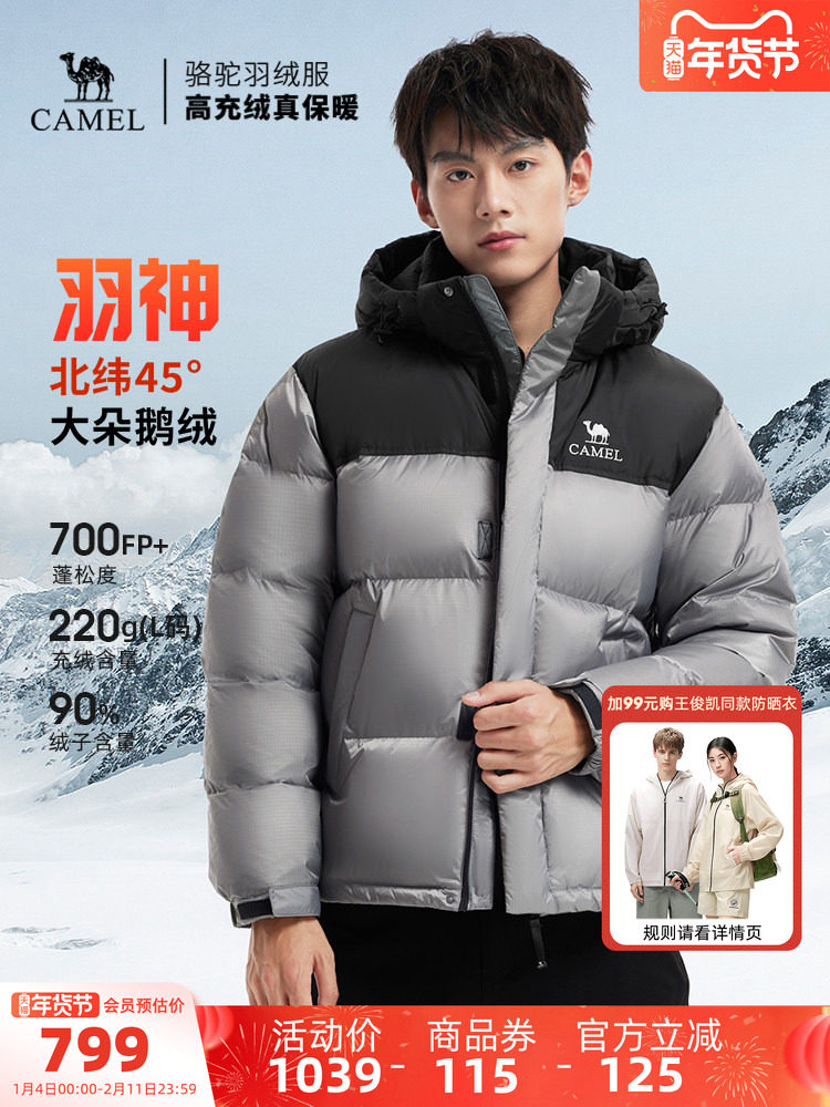 迪丽热巴同款骆驼羽神PRO 男装羽绒服鹅绒加厚保暖面包服短款冬季