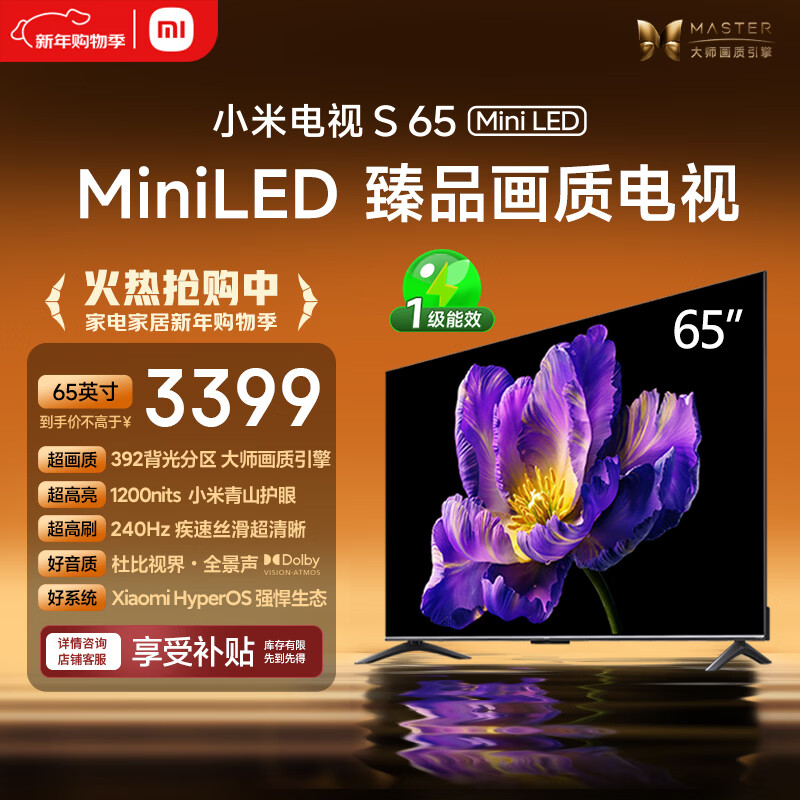 小米电视 S65 Mini LED 65英寸 392分区 1200nits【小户型精品推荐】 4GB+64GB L65MA-SPL家电国家补贴