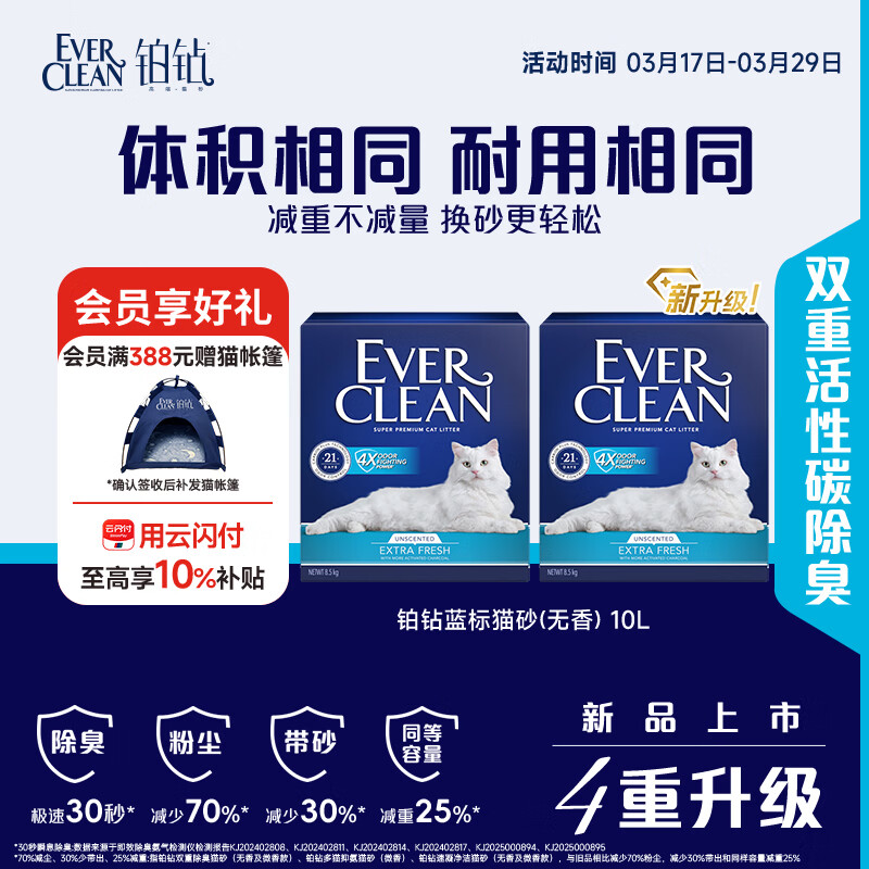 铂钻原装进口EverClean铂钻膨润土猫砂蓝标10L*2盒