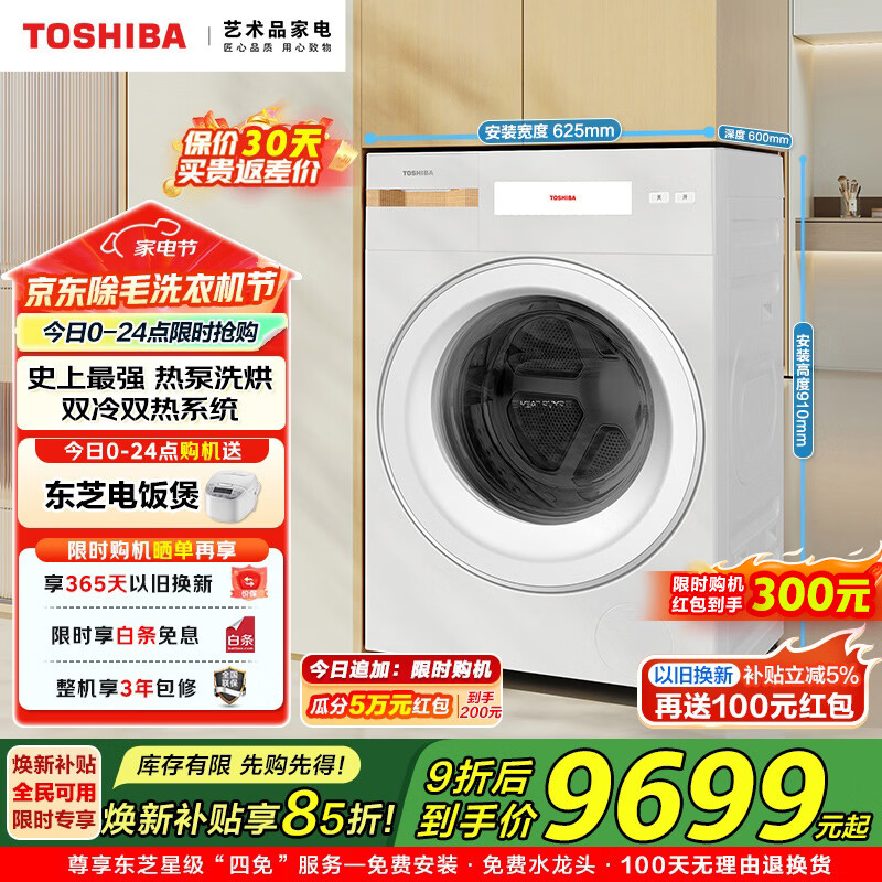 东芝(TOSHIBA)玉兔2.0高奢洗烘套装10KG大容量 全自动滚筒洗衣机+变频热泵烘干机 A级除味除皱 AI智能投放 洗烘套装 10kg DG-10T183BW+DH-10T183BW