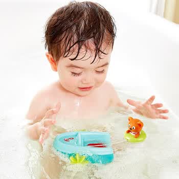 Hape洗澡玩具 0-1-3岁新生婴儿宝宝戏水玩具男女孩泰迪熊漂浮玩偶儿童 E0217泰迪熊滑水回力船