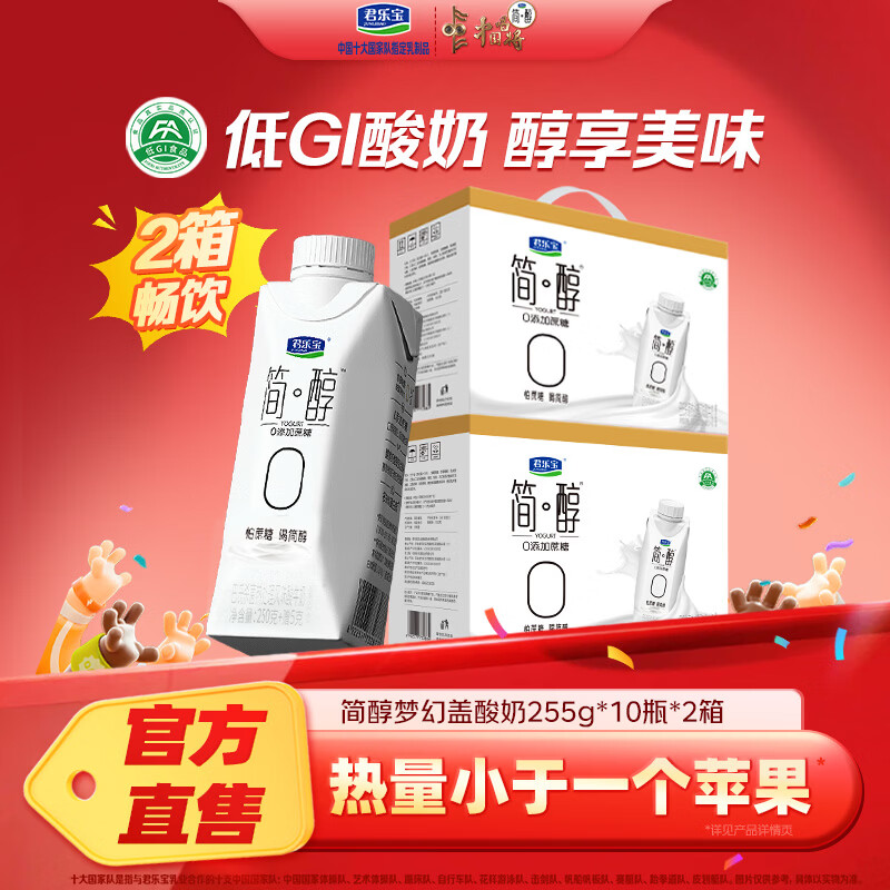 君乐宝简醇高端原味梦幻盖常温0添加蔗糖酸奶风味酸牛奶发酵礼盒 【简醇酸奶】255g*10瓶*2箱