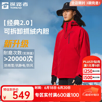 探路者三合一冲锋衣 保暖套绒户外外套 防风防泼水可拆卸内胆登山服新款 【经典2.0】-燎原红-男款 L