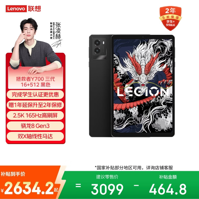 联想平板电脑 拯救者Y700三代 8.8英寸mini小平板 165Hz高刷电竞 骁龙8Gen3 2.5K 16+512G黑