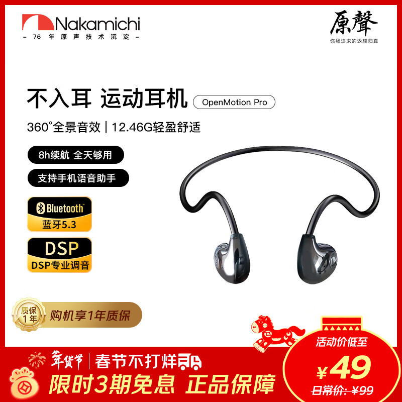 Nakamichi中道OpenMotion Pro 蓝牙5.3不入耳挂耳蓝牙耳机运动健身通勤AI通话降噪超长续航空气传导专业调音 OpenMotion Pro