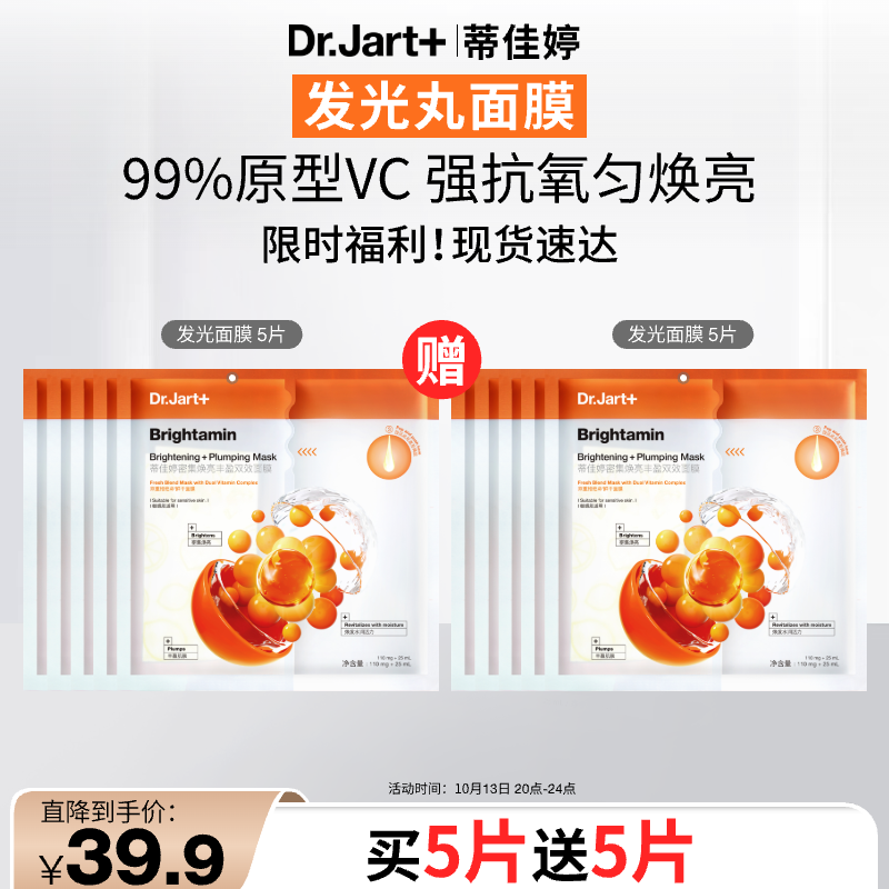 蒂佳婷(Dr.Jart)发光丸面膜5片VC烟酰胺保湿抗氧焕亮敏感肌 礼物
